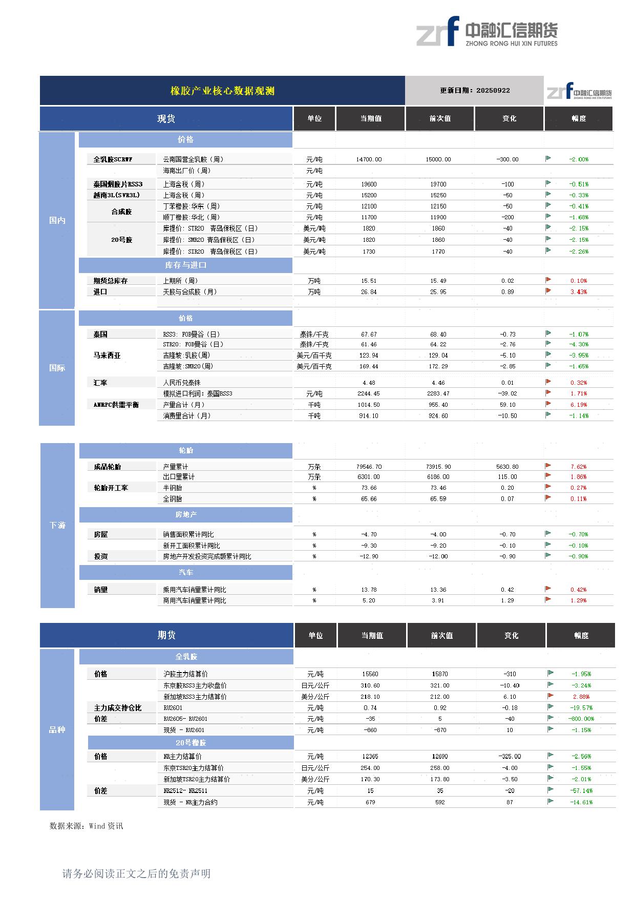 20250922中融汇信期货—橡胶产业周报—橡胶区间震荡