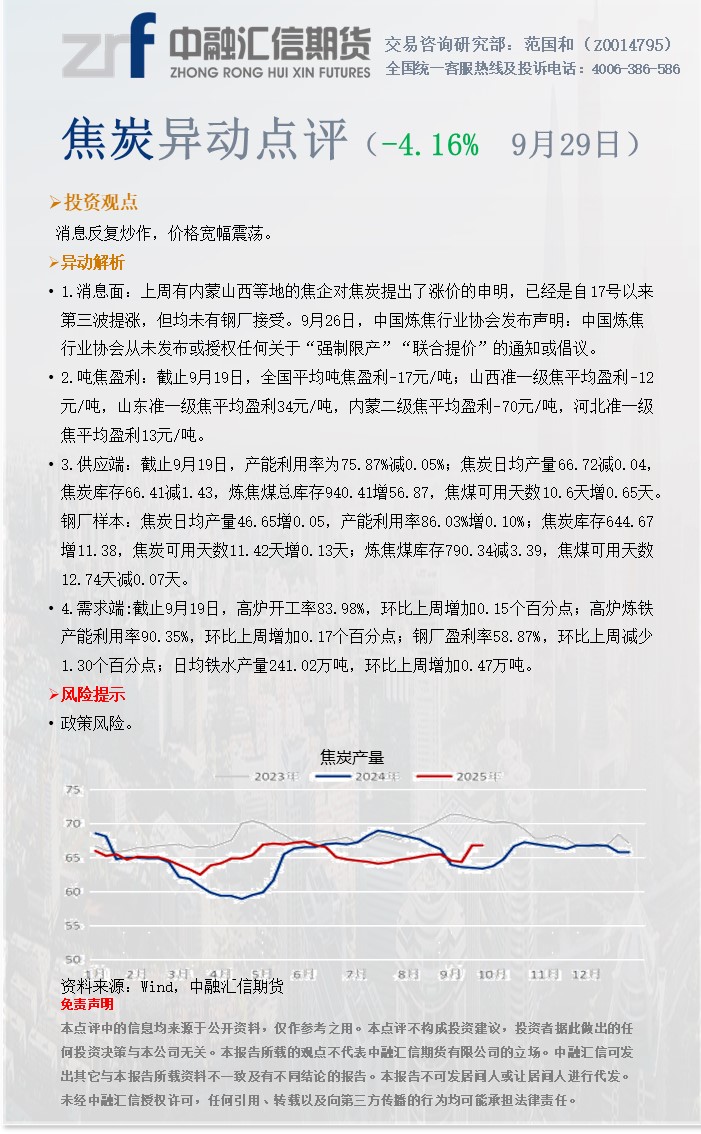 20250929中融汇信期货—焦炭异动点评