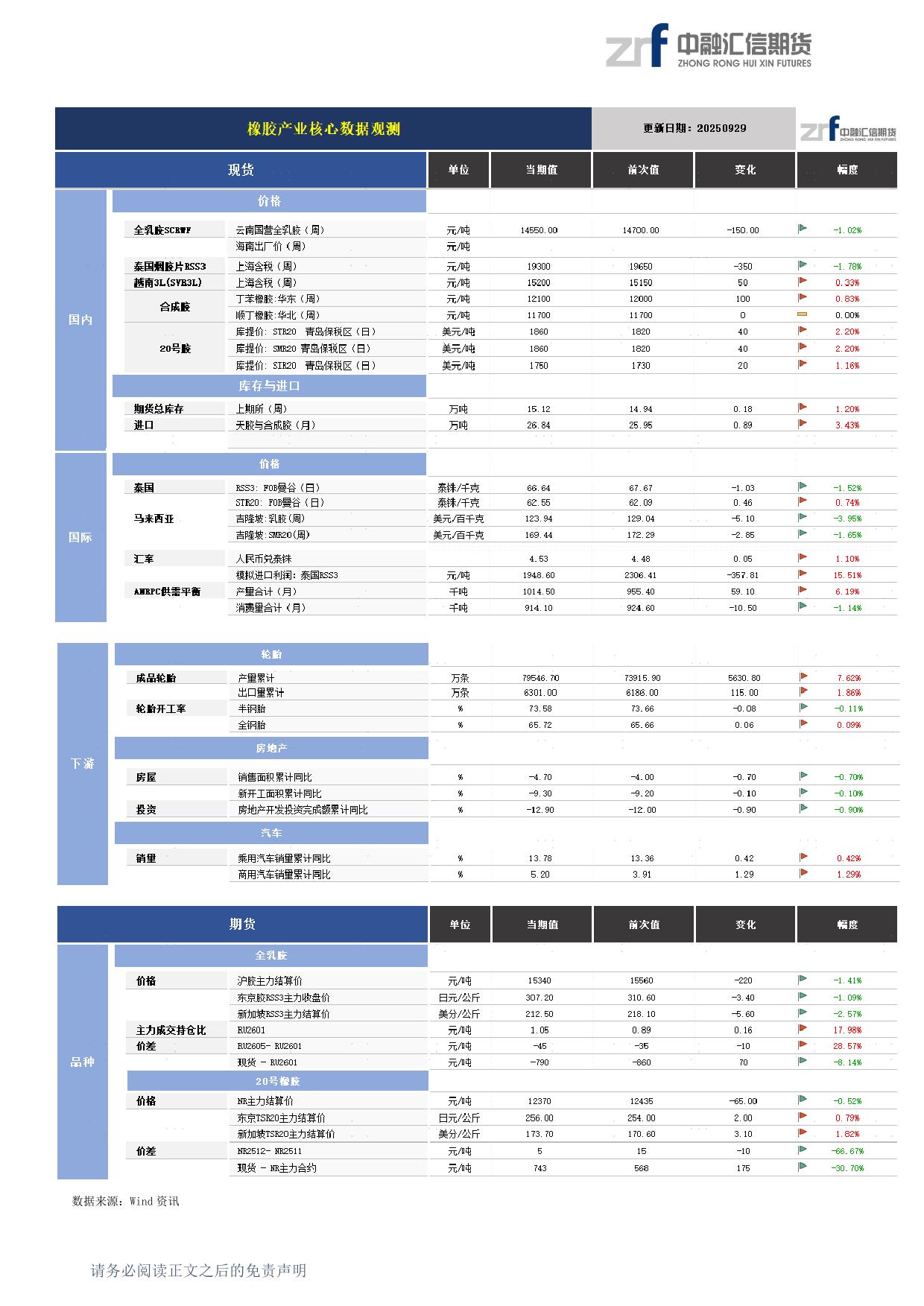 20250929中融汇信期货—橡胶产业周报—橡胶区间震荡