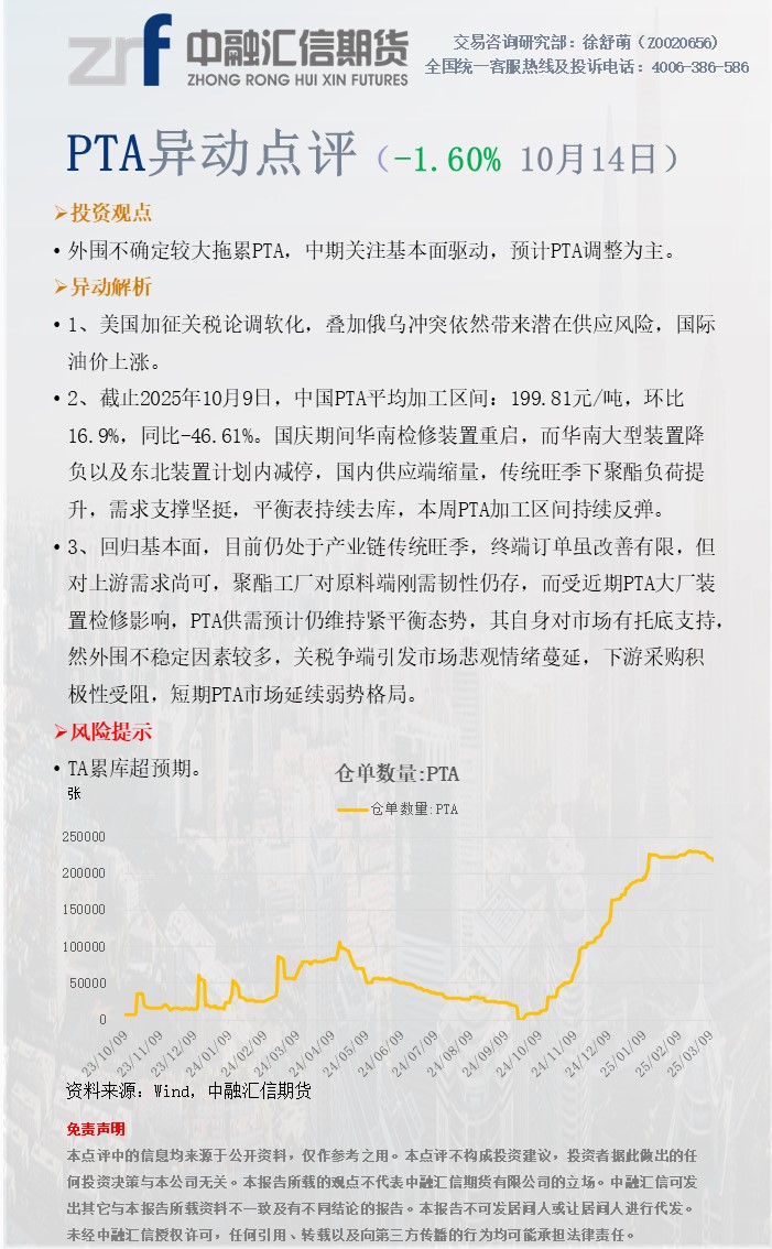 20251014中融汇信期货—PTA异动点评