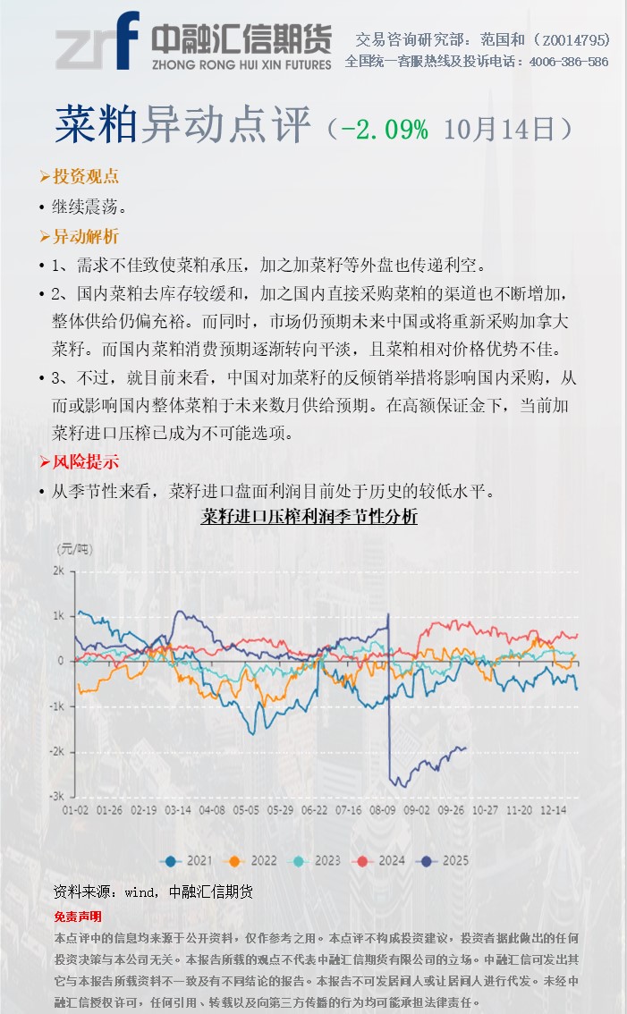 20251014中融汇信期货—菜粕异动点评