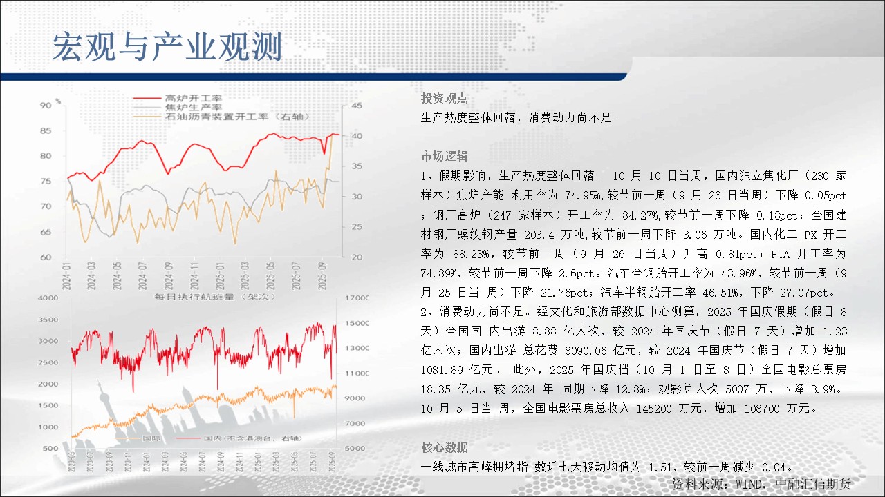 20251015生产热度整体回落,消费动力尚不足—中融汇信期货—晨报集萃