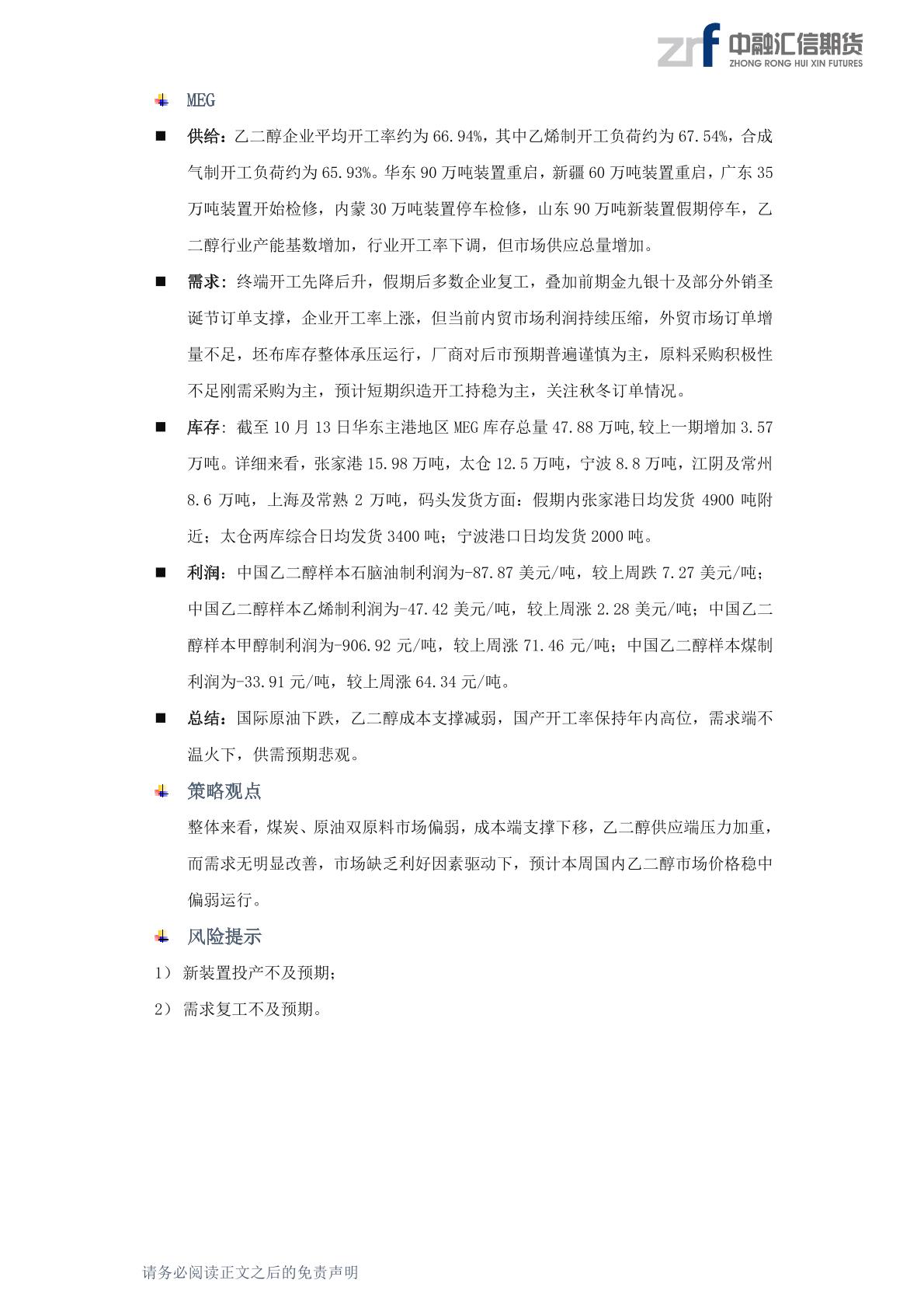 20251013中融汇信期货—能源化工产业周报—市场缺乏利好支撑TA调整为主 供需预期悲观EG偏弱运行