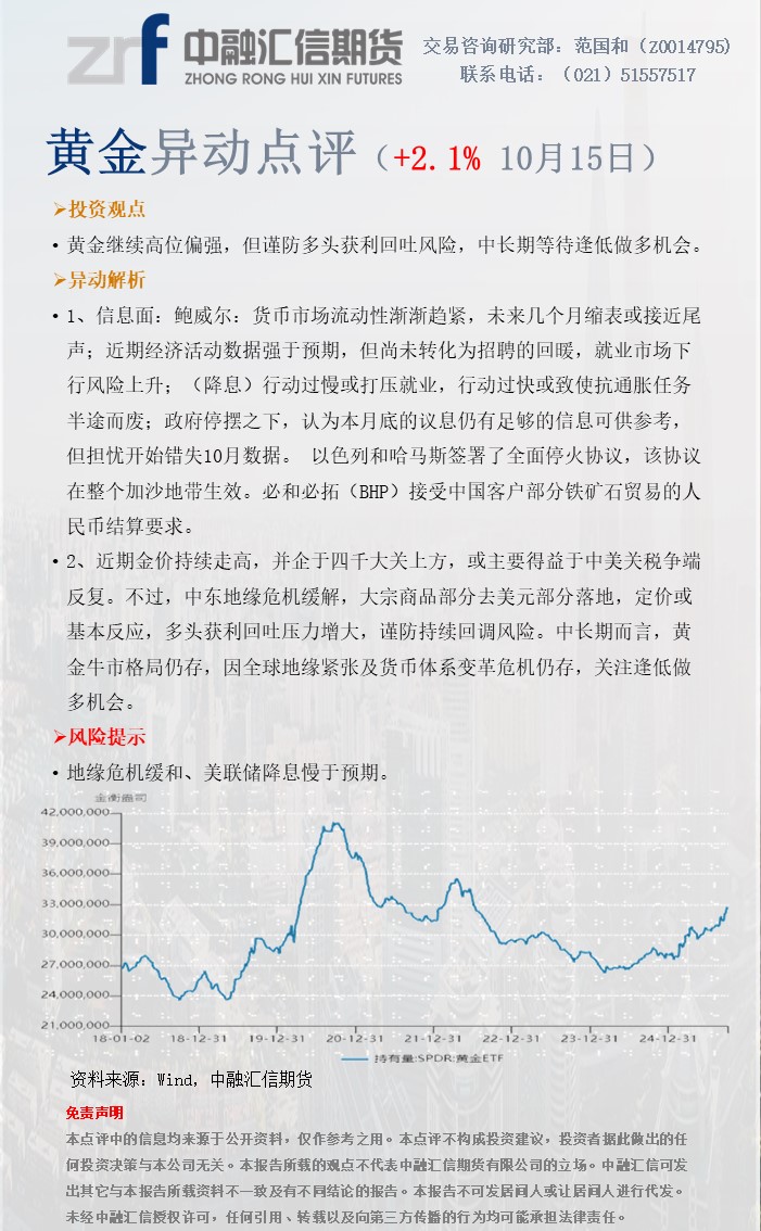 20251015中融汇信期货—黄金异动点评