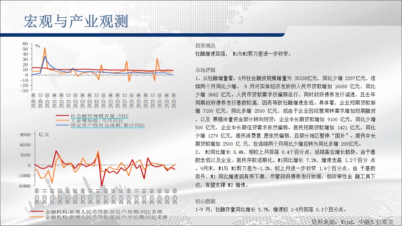 20251017社融增速回落, M1与M2剪刀差进一步收窄—中融汇信期货—晨报集萃